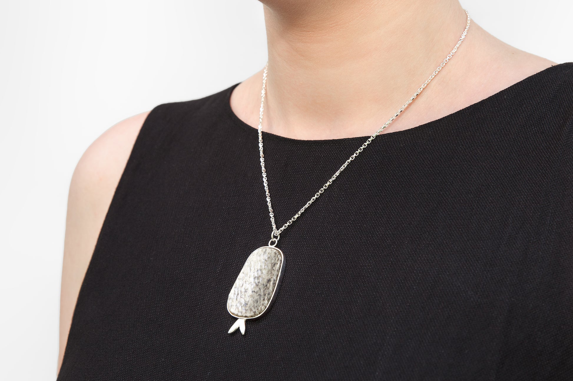 Halsband i återvunnet 925 silver med fiskskinnsberlock.